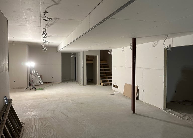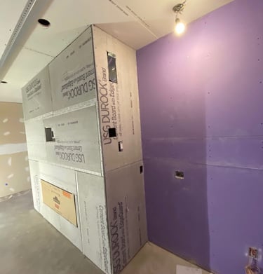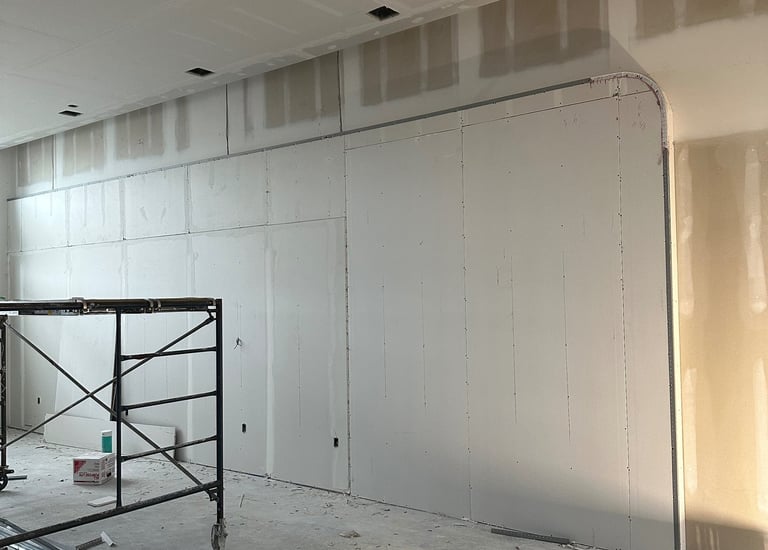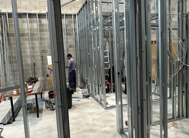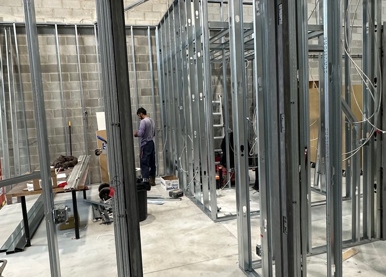 Recent projects showing drywall, metal framing and flooring.